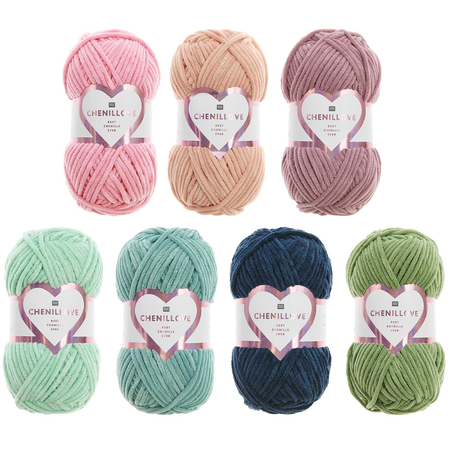 Rico Creative Chenillove is a soft and very plush chenille style chunky yarn in 100g balls.  Super soft to the touch and perfect for snuggly garments and toys.  Now available in Double Knitting as Chenillovely and also in four neon shades in chunky 50g balls. Plus all new for winter 2025, Chenillove Sparkle, and the new pattern booklets here.