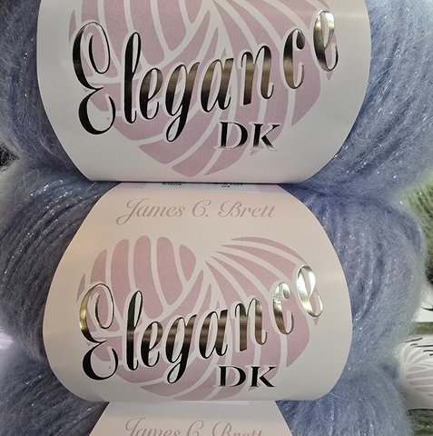 Elegance DK is a light yarn with a fluffy halo and a touch of metallic sparkle in a selection of elegant, chic and sophisticated colours.  Perfect for light and airy garments and accessories for the upcoming party season.