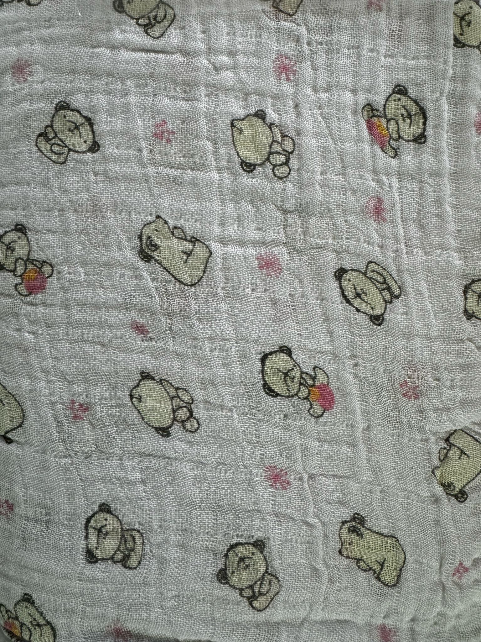 Emma and Mila – Bear in Turquoise Muslin Nursery Double Gauze Fabric
