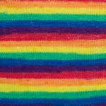 The two rainbow combinations come in a narrow colour repeat, called ’Be you’, and a broader colour repeat, called ‘Be bold’. Designed by Stuart Hillard, these shades aim to spread joy and acceptance. Head Over Heels has been specially developed to be durable enough for socks, but also fine and light enough for knitters and crocheters who like to make shawls.
