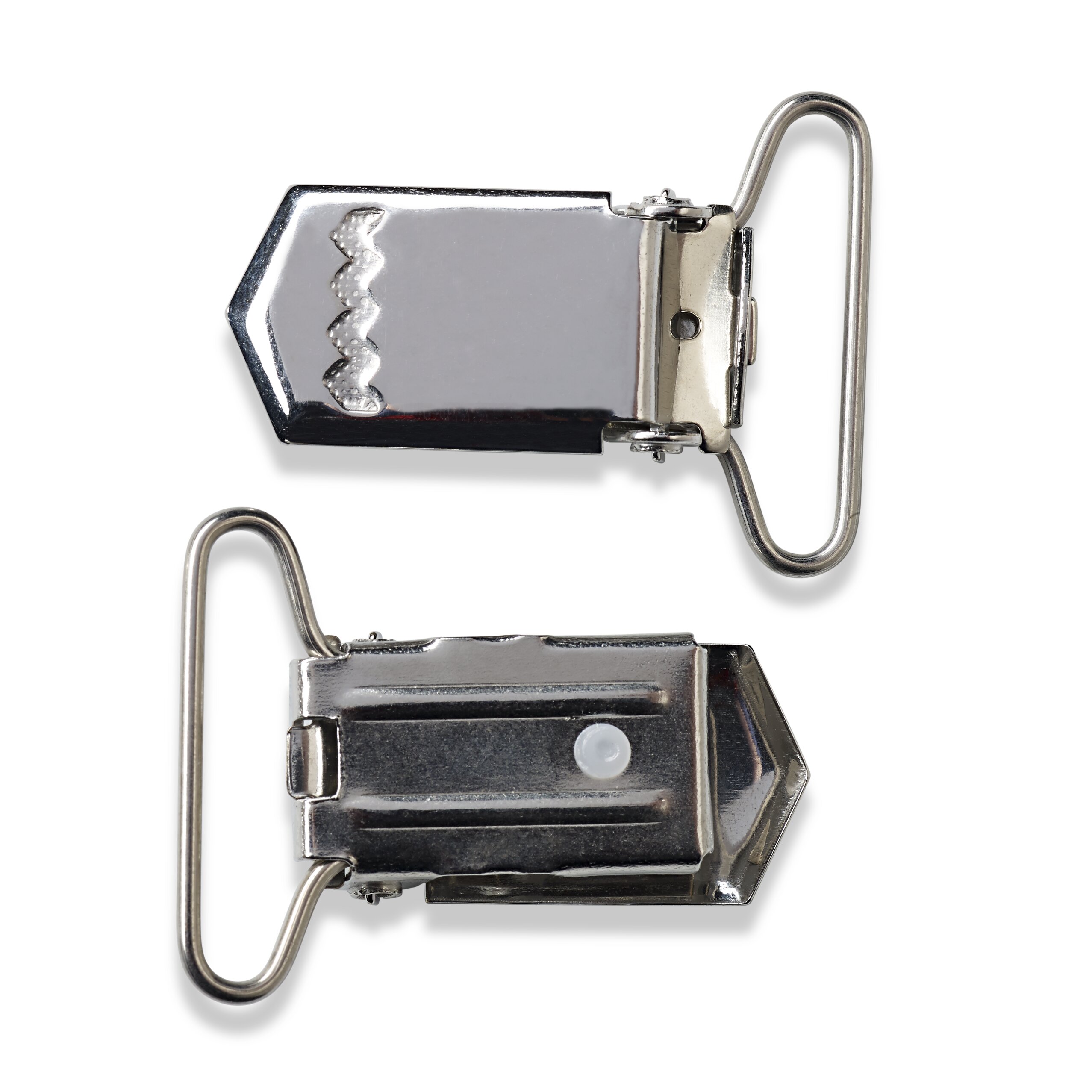 The clip on your braces or dungarees is broken due to heavy wear on one or both sides? No problem, because it can be comfortably replaced with these clips for braces. The clips are simply sewn onto the loop – the new fastener is finished. Furthermore, the length of the strap can be varied by means of a hinged buckle and at the same time it provides a secure hold of the strap by means of its toothing. The silver coloured brace clips impress with their reliable closing mechanism, the pressure of which does not decrease even with frequent use.
