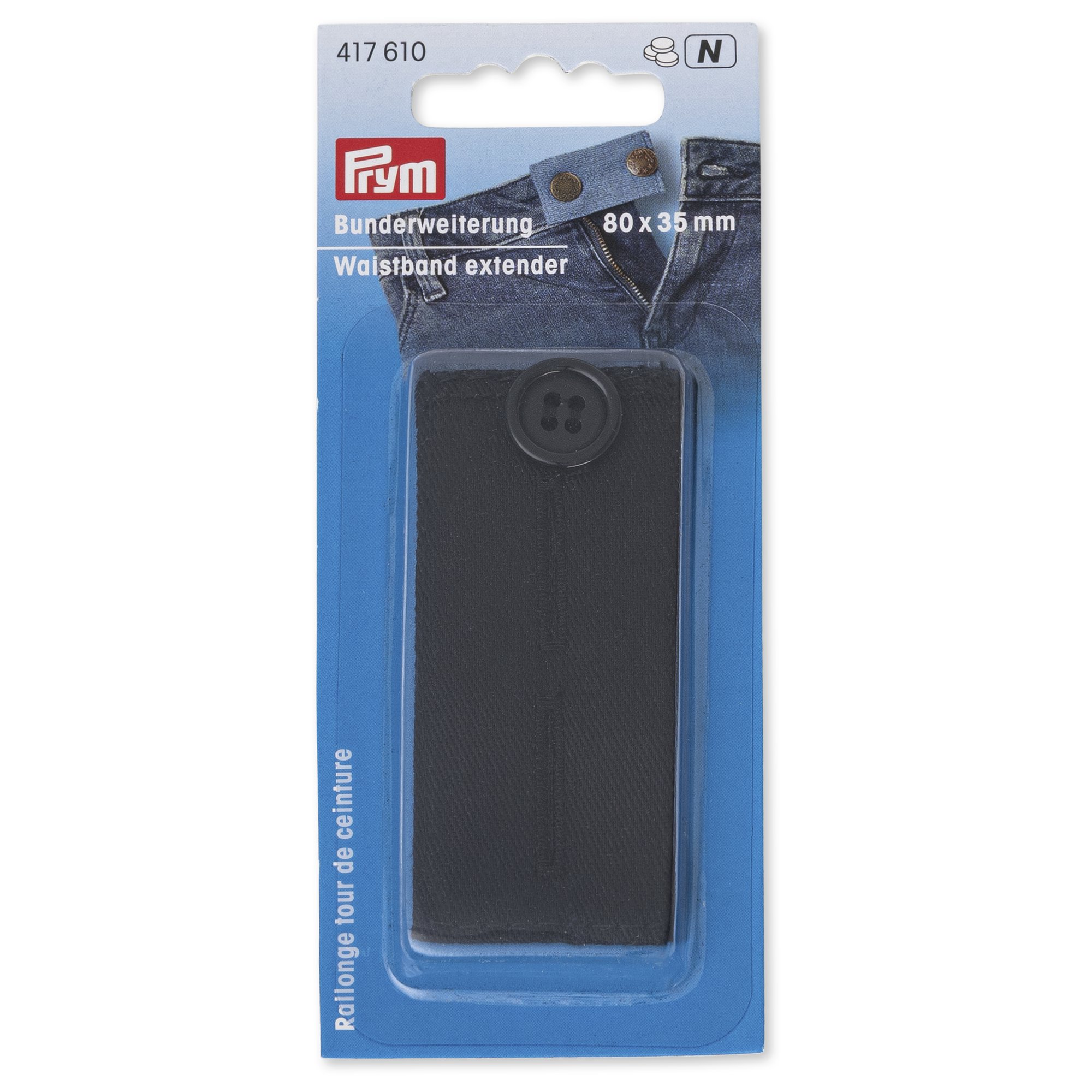 Your favourite skirt pinches and squeezes at the waist, or you need a few more decisive centimetres to do up your jeans? A new outfit is not always necessary, because the waistband extender from Prym makes each section around the hips or the waist immediately comfortable again. A cost-effective alternative and child’s play to attach – depending on the model, the extender is hooked or buttoned on and the garment waistband gains up to 5 centimetres. And come the moment when the pair of trousers, or skirt, etc. fits once more, the practical accessory can be easily removed. The waistband extender is available in fabric or denim quality.